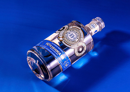 为完善并提升整体设计质感,酒瓶顶部配有带金属镶嵌的玻璃瓶塞 —— 这一精致细节不仅为这款独特的烈酒系列增添了尊贵感,更提升了其价值。标志以字母 “B” 为核心 ——“B” 既是 “Biblioteca