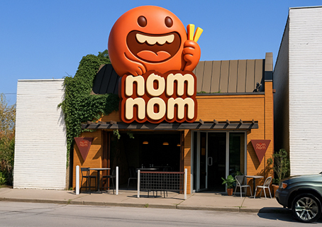 视觉层面,整套设计体系遵循 “大胆、简约、趣味” 的原则。我选用了三种核心色彩:活力橙、奶油米白与深棕,在动感与舒适感之间找到平衡。其中,橙色能瞬间吸引注意力,激发食欲;米白色则中和了橙色的浓烈,增添