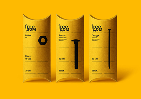 包装的形状选择并非偶然。鉴于紧固件本身价格不高,包装应亲民且易于生产。通常类似的盒子常见于快餐包装(如馅饼)。这一选择象征着信任与效率:消费者知道盒内物品必定适用且可靠。品牌的另一理念是:“比薯条更简