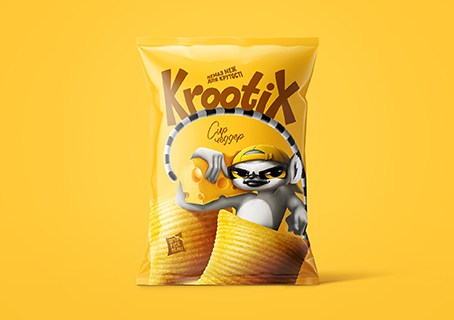 一只活泼好奇的狐猴吉祥物成为了这个自由奔放世界的象征。它总是动个不停,总是身处群体之中,总是在玩些有趣的名堂。每种口味都讲述着不同的故事,狐猴会以俏皮的方式与食材互动。例如,在芝士口味的包装上,它把一