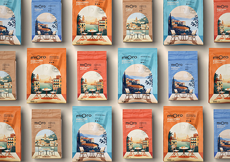 视觉设计概念是基于一个拱形结构,这是一个融入意大利建筑的标志性元素,同时也像一个入口,带着每一口美味的饮料进入一个新的氛围。包装线明亮而柔和的调色板使其在货架上脱颖而出,区分咖啡品种,并让人想起意大利