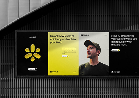 品牌体系强调简洁和目的性。每个元素,从排版到UI组件,都是在考虑用户清晰度的情况下精心制作的。其结果是一个有凝聚力的视觉语言,加强了Nova AI的使命:使生产力毫不费力和授权。