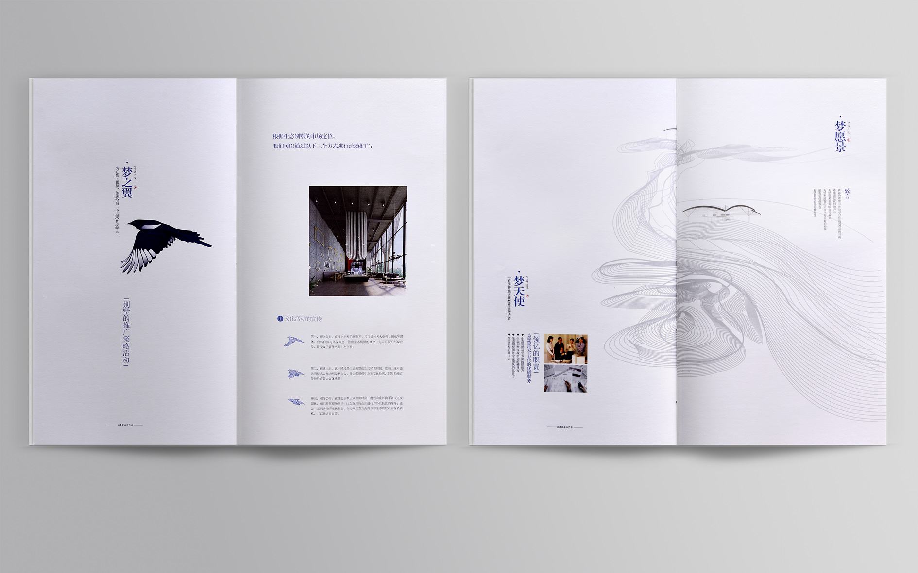 中国画十分讲究留白,为什么会有“留白”这一艺术表现形式呢,因为留白能够产生一种虚实相生,有无相成的意境,而且留下的空白能够给观者更多的想象空间。而在画册设计中一样是需要留白的,满满当当反而会影响效果。