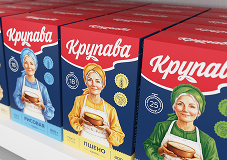 包装的视觉核心,是一位头戴头巾、系着围裙、端着热粥的友好女性形象: ·她以 “母亲般的温柔目光” 望向消费者,将 “母性关怀、家庭温暖” 具象化,成为品牌 “爱与用心” 理念的直接视觉隐喻,让