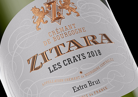 齐塔拉半干起泡酒酒标设计成功联结了传统与现代酒标工艺:它既融入了勃艮第起泡酒瓶型、火漆封签灵感金属箔等经典元素,又运用了深度压印、多层压凸等先进的表面处理工艺。这枚兼具可持续性与高端质感的酒标,既体现