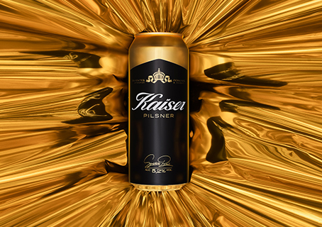 凯泽的文字标志一直蕴含着动态感 —— 一种微妙的斜体倾斜,近乎本能,宛如自然流淌的韵律。在新设计中,这种动态被赋予了明确意图:文字标志现以精确的 45 度角呈现,而这个角度正是倾倒一杯完美凯泽啤酒的角