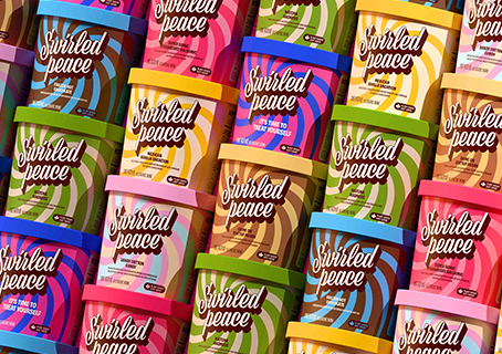 包装系统采用大胆对比的配色与旋转图案,呼应 “动感、享受与多元” 的理念。每个品脱包装都有独特的旋纹,既呼应产品的趣味韵律,又保持品牌视觉一致性。醒目的手写体标志跃然于包装中央,迅速建立品牌认知。欢快